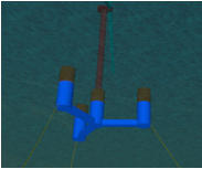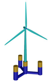 wind turbine, three outboard columns and pontoons connecting the